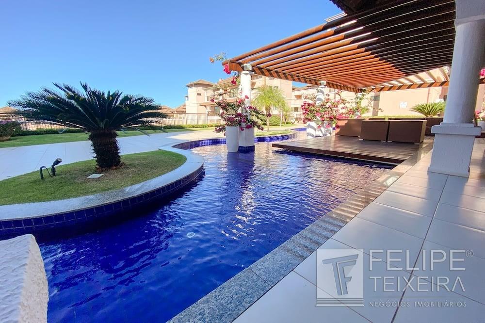 Piscina com raia e cascata
