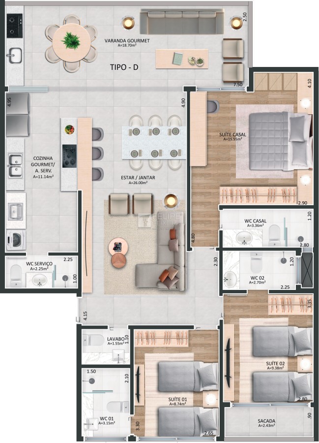 Área Privativa: 115,94 m²